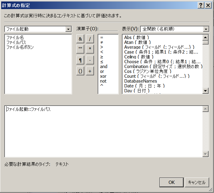計算の内容にはファイルパスフィールドを指定すればOKです。